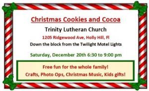 After enjoying the beautiful lights & animated scenes at the Twilight Motel, come join us at our Annual Trinity Cookies ...